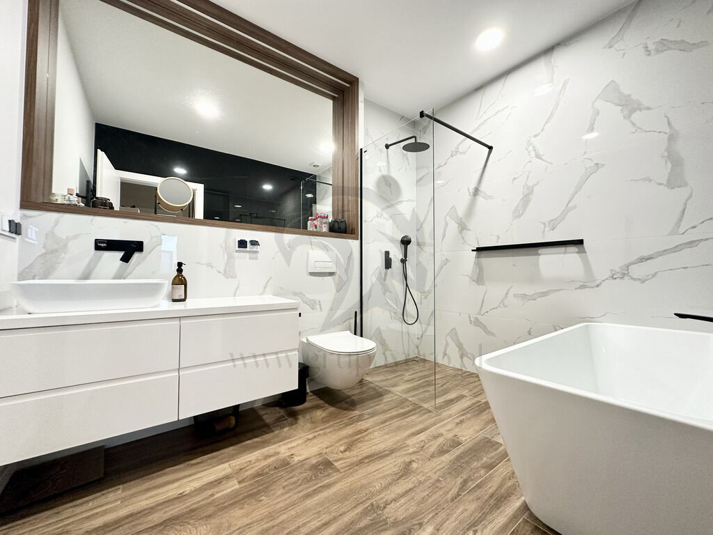 łazienkę z wanną i prysznicem, bo kompromisy są dla innych. Jest